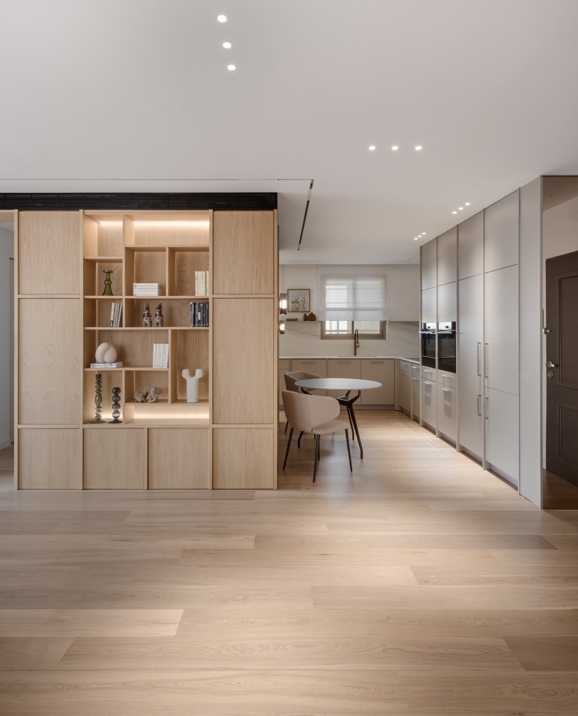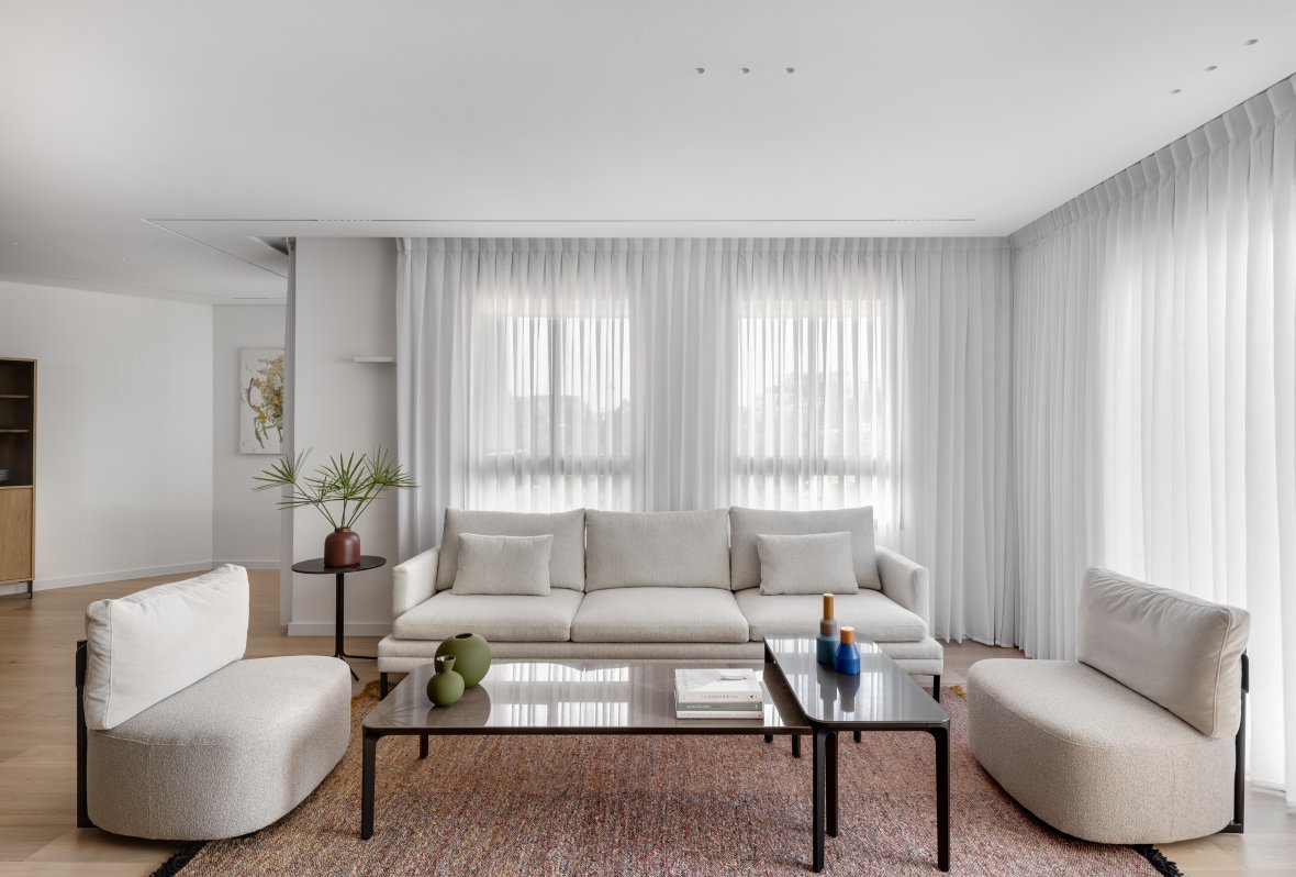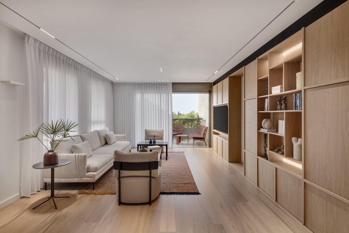 דירת 120 מ״ר לגילוח ותכנון מחודש. המטרה של המעצבות היתה להפוך את הדירה לנעימה ונוחה, מרווחת ונגישה, שיהיו הרבה מקומות אחסון ושתעניק תחושה של מלון. בחלל המרכזי ניתן להתרשם בנגרות מיוחדת שעוטפת את הקירות ועושה הכל נעים ופרקטי.