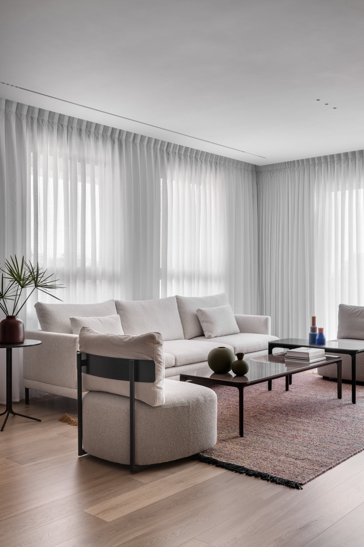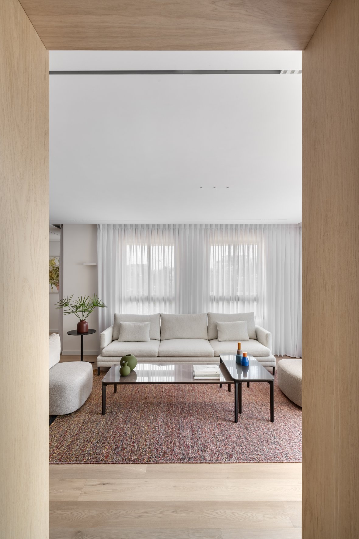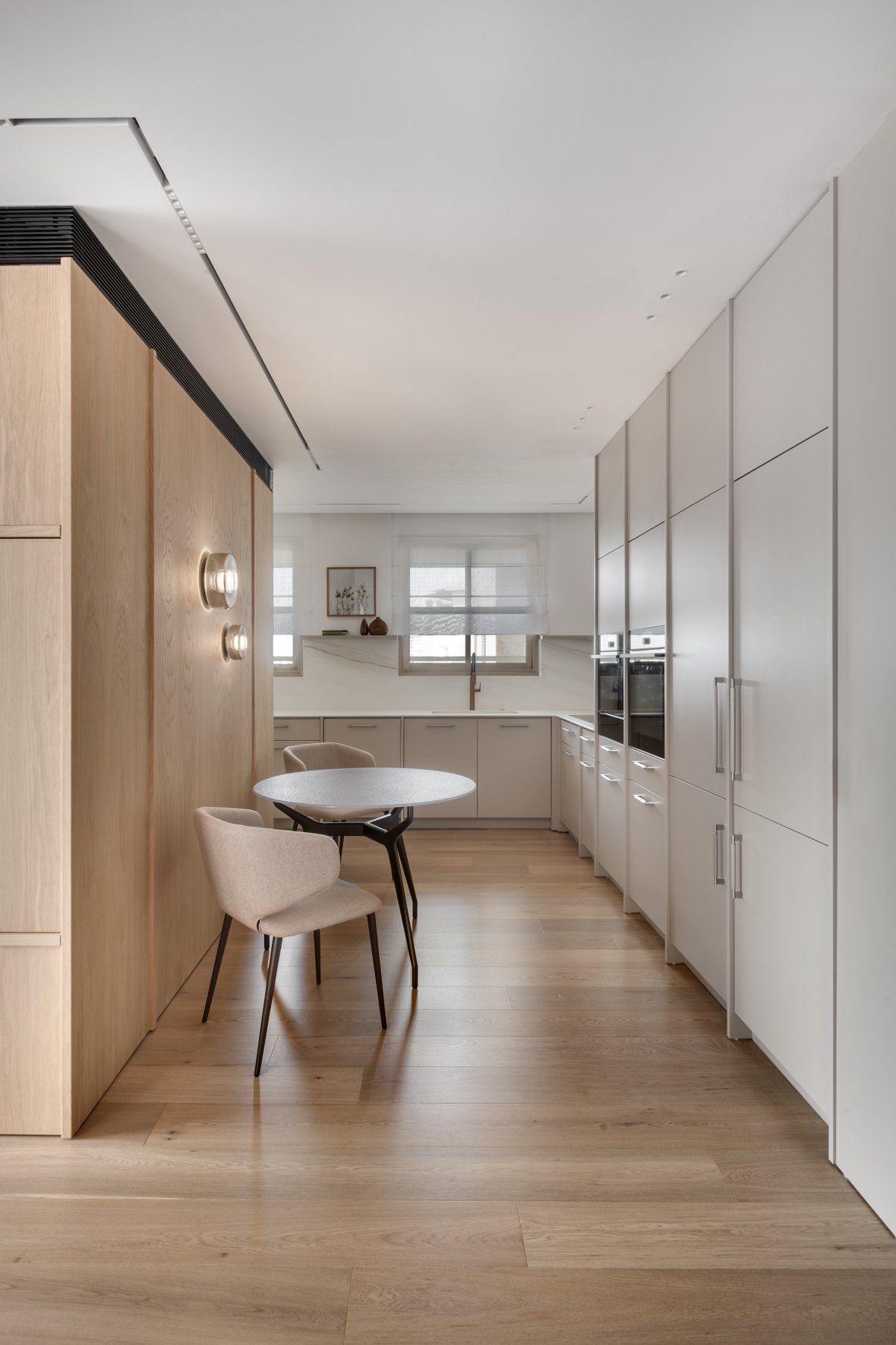 דירת 120 מ״ר לגילוח ותכנון מחודש. המטרה של המעצבות היתה להפוך את הדירה לנעימה ונוחה, מרווחת ונגישה, שיהיו הרבה מקומות אחסון ושתעניק תחושה של מלון. בחלל המרכזי ניתן להתרשם בנגרות מיוחדת שעוטפת את הקירות ועושה הכל נעים ופרקטי.
